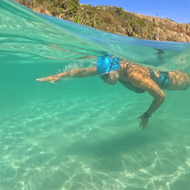 Recorrido de Prainha hasta Praia do Pontal con para para snorkel. Te acompañamos en kayak todo el recorrido e hidratación incluída.